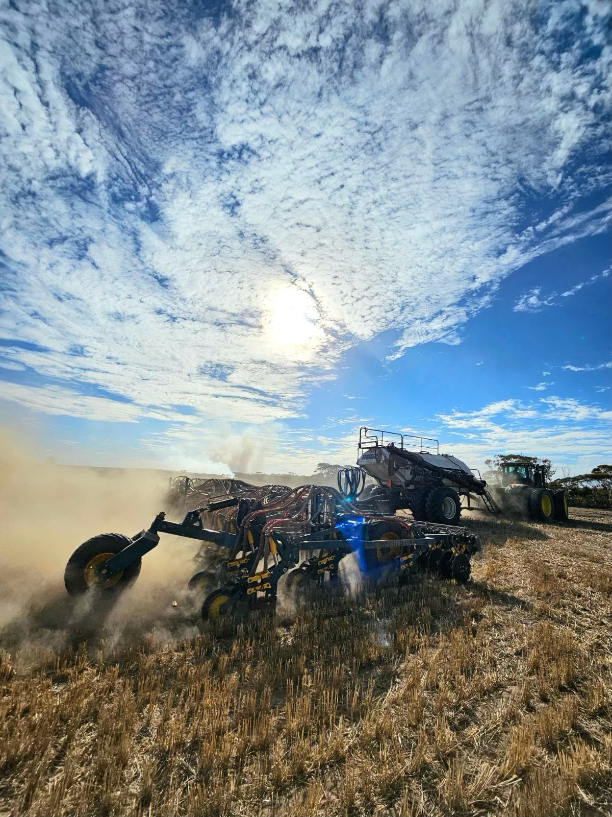 Out here, soil types range from gravel loams to sand and rainfall is about 300mm per annum, of which 220mm is growing season rain. In March, 40 to 50mm was received, from the remnants of a cyclone which created an excellent knockdown opportunity. Now that that moisture is down “out of reach”, dry seeding vetches has begun.