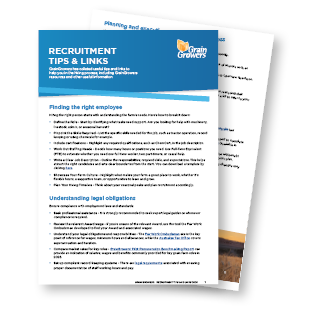 GrainGrowers has collated useful tips and links to help growers navigate the recruitment process. This resource outlines key steps for attracting and hiring the right people, along with additional information to make the process easier and more effective for growers.