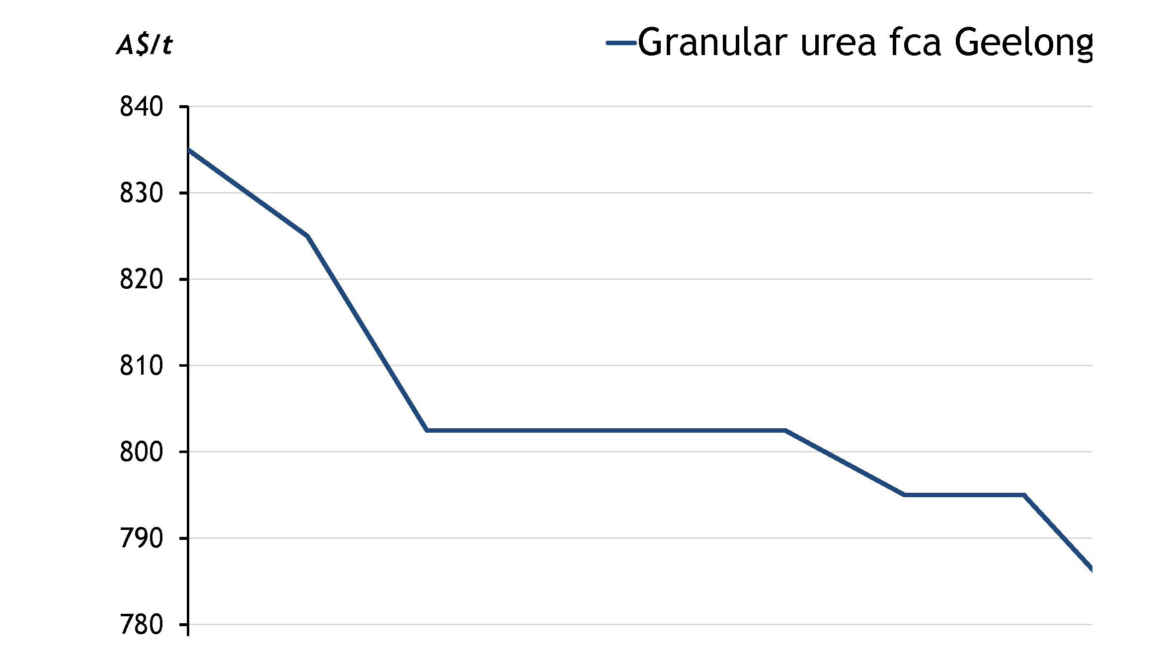 Granular urea was last assessed at A$760-770/t fca Geelong.