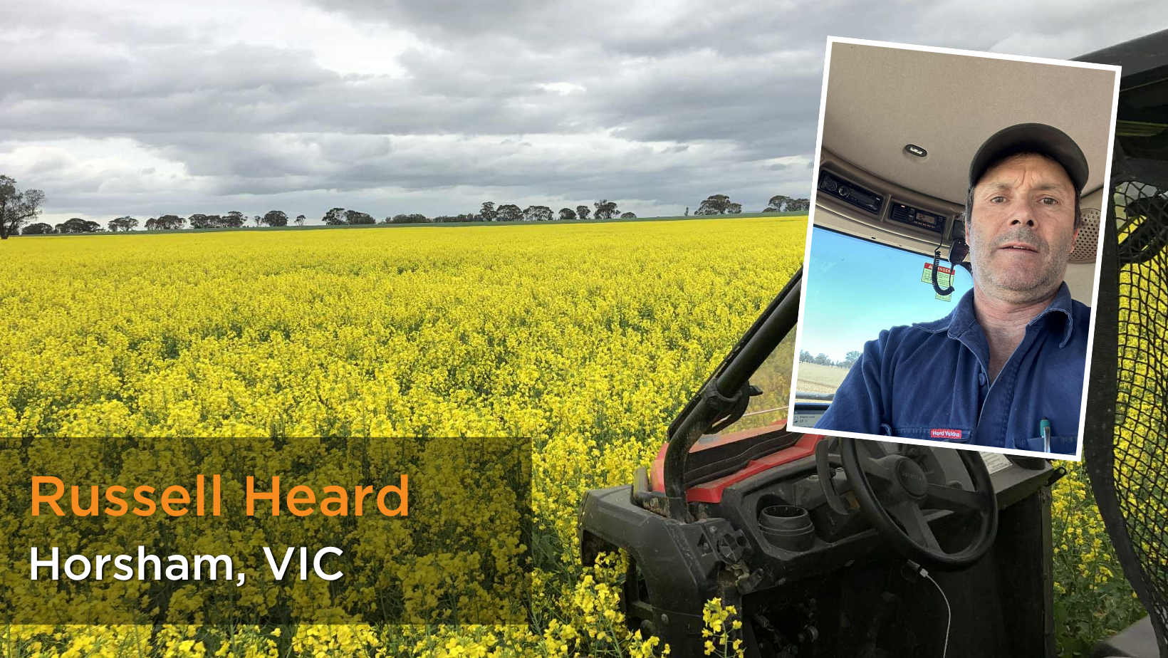 Hi, I’m Russell Heard and I farm with my wife Leoni and our small team across two properties south and southwest of Horsham in Wonwondah, Victoria. We crop around 1800 hectares and run a small terminal lamb enterprise that complements our cropping program.