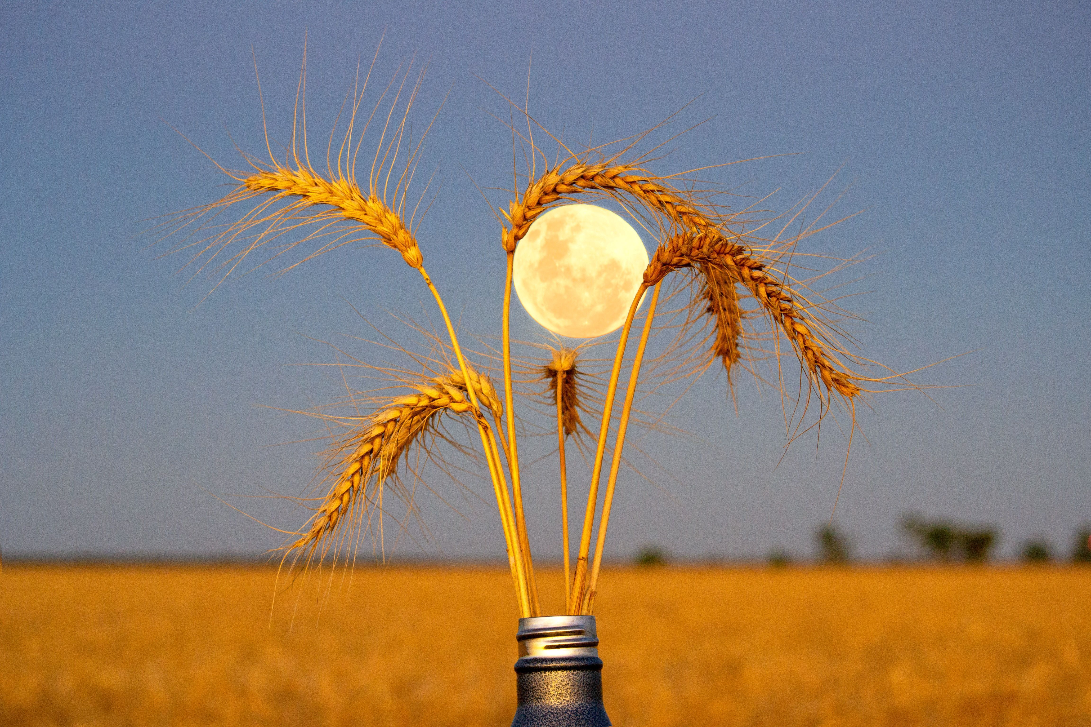 Judge's Comment: A clever and visually appealing composition that frames the moon with grain heads, creating a quiet, beautifully timed moment.
